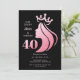 Queen Crown Pink Glitter Black 40th Birthday Invitation