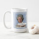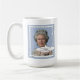 A light hearted comic mug with the Queen of England on a stamp feeling rather degraded as a result and with the Royal Mail a standard joke in England I can't blame her. Caption reads: "I don't know what's more degrading the price or being 2nd class" Design by Richard Hiatt