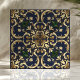 Queen Esther Damask Scroll Navy Blue Gold Ceramic Tile