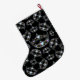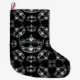 This double sided stocking has a scattered, repeat pattern, with a black background, of the silver version of my Queen of Hearts gold crown tiara by me, Kristie Hubler, copyright October 2001, made for my customer's dog Queenie's fabric photo frame, via fabricatedframes.com - with colorful, heart shape diamonds and pearls. The gold version of is crown was hand painted onto satin and adhered to the frame. Created in October 2001, copyright protected. The crown sells on fabric here at @Zazzle at http://zazzle.com/fabricatedframes/fabric or http://spoonflower.com/fabric/1371922