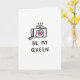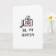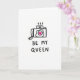 This card shows a simple black line drawing of a camera centered on a white background. The camera is outlined with thick, slightly uneven black strokes that make it feel like a quick sketch. In the middle of the lens, there’s a bright hot pink heart, like the camera is “focused” on love ❤️. Above the camera, three small curved squiggles float upward, suggesting excitement or warm feelings. Under the drawing, the words “BE MY QUEEN” appear in black, all-caps, handwritten-style letters, placed near the bottom of the card. It feels meaningful because it’s direct and sweet, like you’re saying exactly what you feel without overthinking it 🥰. Share it to pass along your Valentine’s Day feelings in a simple, caring way.