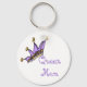 Purple whimsical text reads Queen Mum on this white round key chain, with a jester style purple crown completing this great Mother's day gift.