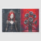 Dive into the enchanting world of gothic elegance with this coordinated set of two tissue paper designs. One design features a striking Dark Queen dressed in Victorian gothic lace attire, with fiery red hair and a pale, ethereal face. The other showcases black roses against a deep red background, creating a perfect match for the regal beauty of the Dark Queen. Ideal for decoupage, this set is perfect for crafting, furniture restyling, Halloween projects, and adding a touch of dark sophistication to any creation.