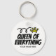 Queen of Everything funny custom keychain. Personalized key chain for wife, girlfriend, coworker, colleague, employee, teacher, coach, friend, mom, girl, daughter, sister, aunt, grandma, lady boss etc. Cute round button keychain design with crown and humorous quote for women. Office humor presents. Also nice as Birthday gift for her.