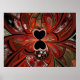 Abstract fractal design resembling a swirling black, red, and white torrent of cards with a pair of hearts at it center.