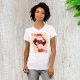 This design is a wonderful looking queen of hearts playing car design. The queen has a very fierce look on her face. The queen of hearts is set to a nice textured background. This queen of hearts design looks great on this womens t-shirt. Perfect for yourself or as a gift