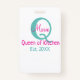 Queen of kitchen monogram green pink simple minima badge
