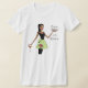 My overall review is that the T-shirt is nice, it fits true to size however the font is significantly smaller than advertised and you can't read it. The printing is unreadable and there is a strain to read it. It does not look like the advertised product. Maybe the shirt color is darker or a larger more visible font should have been used. Photos with and without flash and font is barely legible.