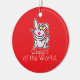 Lightweight, smooth, pure white ornament with nice sheen. Perfect size to be seen from across the room ... and to attract closer inspection! Price was great for ordering enough for the whole family! Clear, bold black design just as requested. Matches the order exactly. Just so nice!