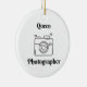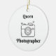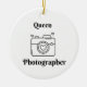Queen Photographer with a camera on a ceramic Christmas ornament.