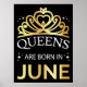 'Queens Are Born In June' cool quote with a crown illustration for birthday girls.