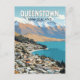 Queenstown New Zealand Travel Art Vintage Postcard
