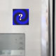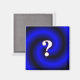 A magnet with a question mark on it. A square magnet.