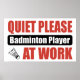 Quiet Please Badminton Player At Work. If Badminton is your hobby, occupation, or obsession, show it with great Badminton t-shirts, mugs, stickers, and more. They're also great gifts for other Badminton fans!