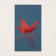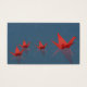 A family of red origami cranes floats across the still water of a pool while the raindrops splash around them.
