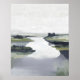 This minimalist abstract landscape artwork captures the peaceful feeling of a quiet river winding through an open valley. Soft slate blue, sage green, and charcoal tones blend with a light, airy sky to create a calm and balanced composition that brings stillness into any space.