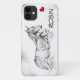 A black and white ballpoint pen illustration/drawing of a young horse laying on the ground just waking up from its nap. The case also features a little red heart and is customizable with your name. Artwork and design by Robin Cox.