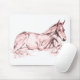 A black and white ballpoint pen illustration/drawing of a young horse laying on the ground just waking up from its nap (with salmon colored filter). Artwork by ballpoint pen artist Robin Cox.