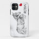 A black and white BIRO (ballpoint pen) illustration/drawing of a young horse laying on the ground just waking up from its nap. The case also features a little red heart and is customizable with your name. By the BIRO Artist Robin Hewitt.