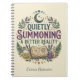 This "Quietly Summoning a Better Reality" design features a customizable name field, making it the perfect personalized grimoire or manifestation journal for modern mystics. The artwork showcases a celestial moon, lavender sprigs, and a magic spellbook in deep purple, forest green, and gold tones for a vintage-inspired aesthetic.