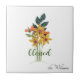 Quilled autumn flowers on white background, with "blessed" message and personalized with name. Easily change name and text using the Template provided. This size tile, 4.25" x 4.25" 0.19" thickness, is often used as a carafe or wine bottle trivet. A larger 6" x 6" size is also available. Awesome personalized gift for anytime of the year, lightweight for mailing. Made of white ceramic and full-color, full-bleed printing. See "About This Product" at side for more information.