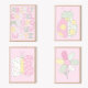 A combination of soft, quilt inspired designs, and a ladybug creates this cute, bedroom, wall decor art print. The background is pink, while the ladybug consists of white with light shades of green, yellow, and pink. This art print features a signature by me, the artist.