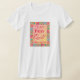 This tee shirt is fully customizable to personalize with your name, quilt guild or group. Wear to promote quilting or your guild or classes. The words are in customizable red text and 2 different fonts. The names (or other words) are centered in a colorful rectangle quilt block art border on a gradient yellow and coral textured background. The colors are red, pink, yellow, orange, turquoise blue, coral and green. This original art is by fabric designer Phyllis Dobbs and coordinates with other products in this store. The border includes favorite blocks such as the log cabin, star, square in a square, and others as well as an applique flower block.