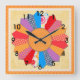 A brightly colored and patterned quilting themed clock with bold easy to see black numbers. Designed in traditional "Dresden Plate" circular quilt block pattern, richly layered with purple and orange hues. See many other sewing themed clocks in this collection at Clock O Rama on Zazzle.