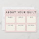 The front of the card tells how to wash, dry, and store their new quilt. The back of the card has space for the maker to write in important information about the quilt: who it's made by, where it's made, when it was made, what pattern it was made with, quilting details, and material details.
