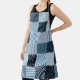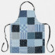 Quilt design. Seamless patchwork pattern from stitched squares with different geometric ornaments. Textile print in blue colors.