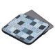 Quilt design. Seamless patchwork pattern from stitched squares with different geometric ornaments. Textile print in blue colors.