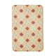 Lovely digital quilt pattern in shades of peach and brick red, with floral and fruit patterns in the center squares. By Monkey Business Graphic Design, 2020.