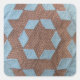 Quilt block in brown and blue "castle" pattern. The central "castle" is a brown star shape, surrounded by the "6 sided wall" with the "watch towers" extending out from the middle of the walls.