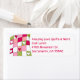 Pretty pink, green, and white return address label, with graphics of a colorful quilt with hearts, on the left side. Personalize the pink text for yourself or your business.