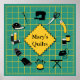 Here’s my special design for fellow quilters with my favorite tools and supplies for quilting, patchwork, needlework and embroidery: sewing needles, spools of thread, pin cushion with stick pins, bobbins, thimble, tape measure, scissors, bolt of cloth, rotary cutter, sewing machine and label on a green and gold self healing cutting mat. A thoughtful gift for yourself or that special creative person in your life.