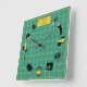 I love this clock, " Quilt Time Customize the Label Square Wall Clock". I purchased it to go in my new sewingroom and made a good choice for it looks really great. I have had it for several months and it keeps excellent time. The clock matches the description, it's very colorful and well made. I would highly recommend for purchase. Customize liable was awesome, it really adds to the clock.
