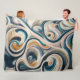 Quilted Blue Gold Abstract Design Fleece Blanket