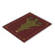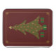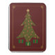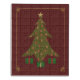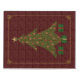This elegant design features a quilted Christmas tree with jewel-toned ornaments adorning it and presents underneath, all surrounded by a delicate gold filigree border with jewels at the corners.