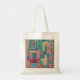Handpainted with acrylic paints; this tote bag is bright and cheerful.