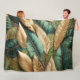 Quilted Gold Green Tropical Leaves Design Fleece Blanket