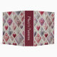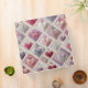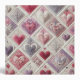 Intricate heart designs in various shades of pink, red, and purple are arranged in a diagonal quilt pattern