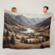 Quilted Mountain Landscape Scene Blue Fleece Blanket
