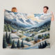 Quilted Mountain Landscape Scene Blue Fleece Blanket