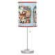 The lamp looks exactly like the picture, bright and colorful. The lamp shade is plastic not what I expected, however I love it! The printing is clear and the name can easily be read.
