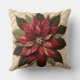 Quilted Pattern Poinsettia Cream Throw Pillow
