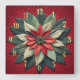 Quilted Pattern Poinsettia Red Square Wall Clock
