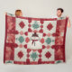 Quilted Pattern Snowman Red White Green Fleece Blanket