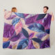 Quilted Purple Blue Pink Leaves Design Fleece Blanket