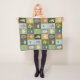 Quilted Summer Leaves Fleece Blanket has a green, grey, yellow and blue pattern with a faux quilt look with faux applique of leaves, pine cones and acorns. You can make this leaves print smaller or larger on this fleece blanket and also move it to a larger blanket. A lovely patterned fleece blanket for any home decor with green, grey, yellow or blue.