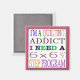 A fun and humorous magnet for the quilter in your life! Are you a "Quilting Addict"? Do you spend all your free time making a quilt? This cute magnet is a perfect gift for someone who quilts. "I'm A Quilting Addict, I Need A 6 x 6 1/2 Step Program". Customize the background frame color-click "Customize it". This small magnet is great for quilting clubs. Image available on a pin back button! See below.